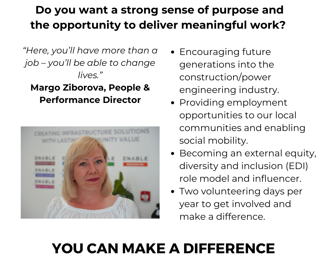 At Enable we believe in working together to maximise the potential of our organisation and our people – being the best we can be. Every personality, every contribution and every opinion matters. We want our people to be themselves and be successful.